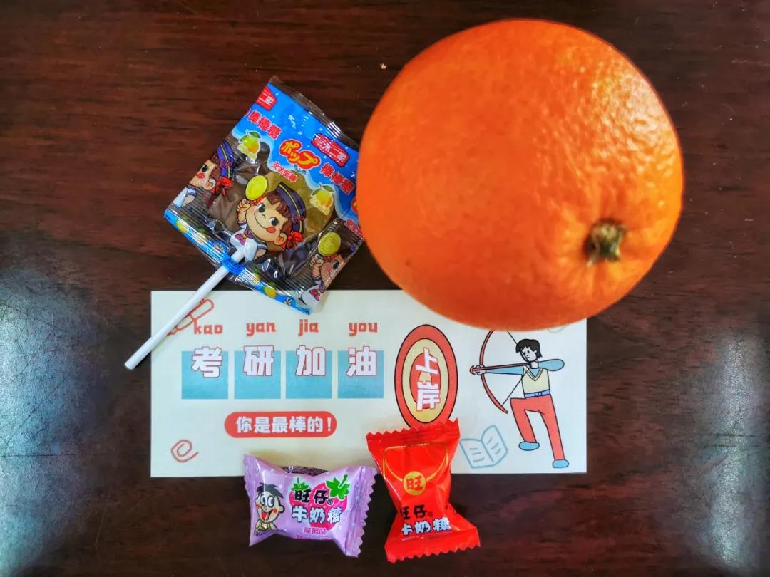 为更好地表达化资人的祝福和期待,​BETVICTOR伟德员工工作组结合公司特色精心设计了“考研加油包”:爱心橙子寓意马到“橙”功,心想事“橙”;棒棒糖寓意“棒”上有名、考试倍“棒”;加油卡片传递了满满的祝福,希望全体考研学子都能“一研为定,定为研一”。