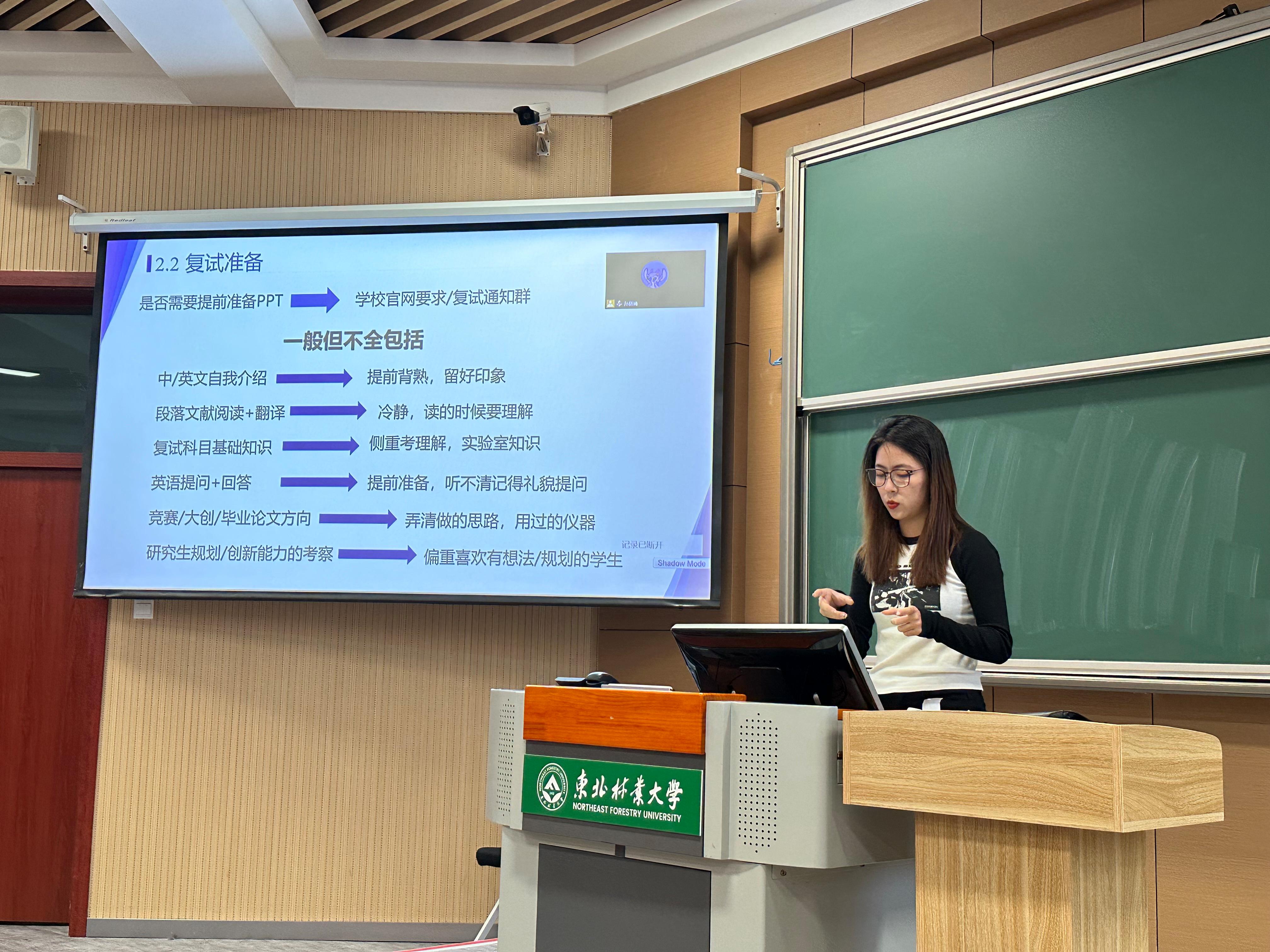 会议伊始,六位同学结合自身经历,分别从不同方面作分享交流。祝新雨从如何选择适合自己的岗位、心态调节、备考方法以及面试技巧方面与同学们分享了她省考一次上岸的公考经验。冯晓慧分享了考研一志愿复试流程、面试准备及注意事项,为同学们详解了专业课、英语口语、复试自由提问等环节常遇到的问题以及解决策略。郭晶重点讲解了有关调剂流程和注意事项,建议同学们从多方面着手准备,充分获取信息,提高录取几率。董谢龙就择校、择专业这个话题进行了分享,重点介绍了自己的基本情况和考本校时的经验。王楚人和许远兵同学从找工作的前期准备、面试tips以及offer选择三个方面与大家交流,同时就化学、化工行业的招聘流程、各单位笔试和面试的要求分享了许多应届本科生求职经验。