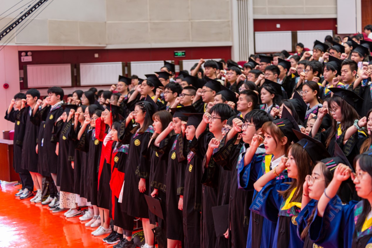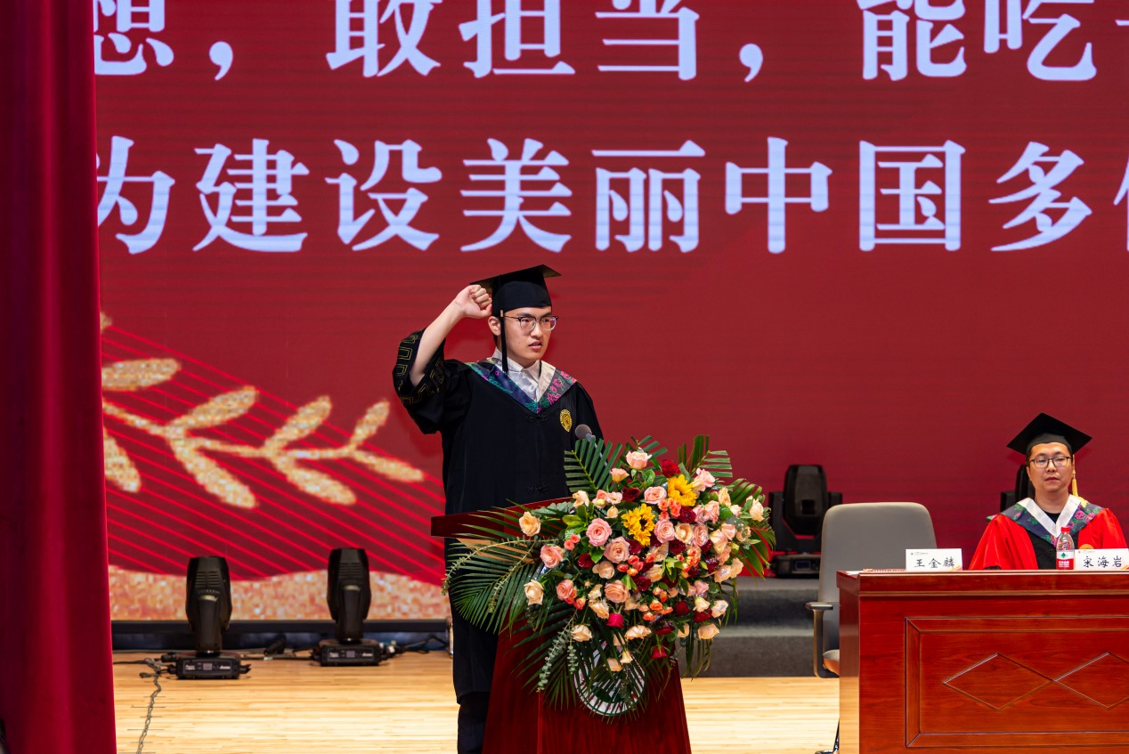 典礼第七项,全体毕业生宣誓。同学们的誓言字字铿锵,立誓努力积极践行生态文明理念,改革创新、奋发作为、追求卓越。立志做有理想、敢担当、能吃苦、肯奋斗的新时代好青年,为建设美丽中国多做贡献!