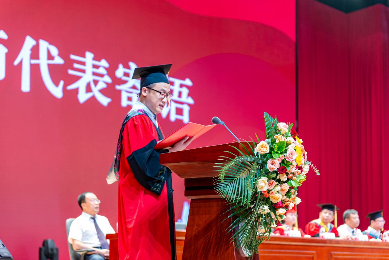 “海阔凭鱼跃,天高任鸟飞”。典礼第五项,教师代表徐加廷老师为毕业生送上来自BETVICTOR伟德老师们的殷殷嘱托。徐老师基于化学反应中电子的“平衡”与“不平衡”寄语毕业生:要善于把握“平衡”,能够敏锐地发现“不平衡”,并巧妙地“平衡”好身边的人和事,做一个高情商的人;要敢于打破“平衡”,永远具备迎难而上的精神,拒绝“躺平”,秉持“以爱为目的,以仁义为规则”的做事原则,在实现中华民族伟大复兴的实践中创造更具价值、更有意义的人生!