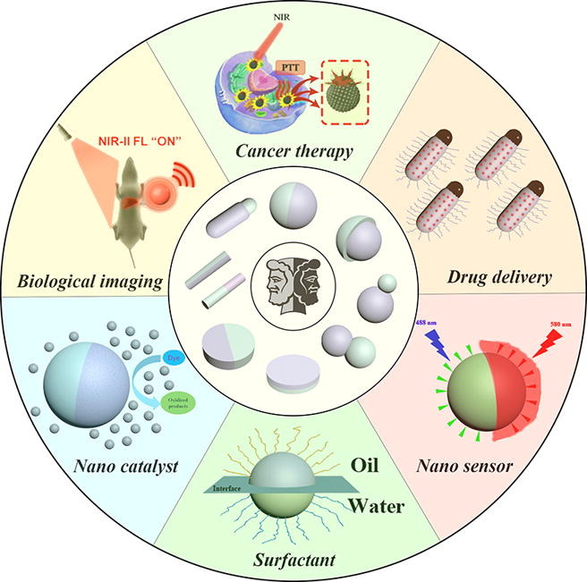 Janus纳米粒子具有不对称结构,呈现两种或两种以上不同的物理和化学性质。该综述介绍了Janus纳米颗粒常见的合成方法,包括溅射法、Picking乳液法、配体交换法、微流控法、种子介导聚合法和自组装法,并对各个方法的优缺点进行了对比讨论。同时,重点总结了Janus纳米粒子在肿瘤治疗、生物成像、载药、催化剂、生物传感器和表面活性剂等相关应用的最新研究进展。最后,提出了目前Janus纳米材料的研究热点以及面临的诸多挑战,并对未来的发展方向给出了判断。