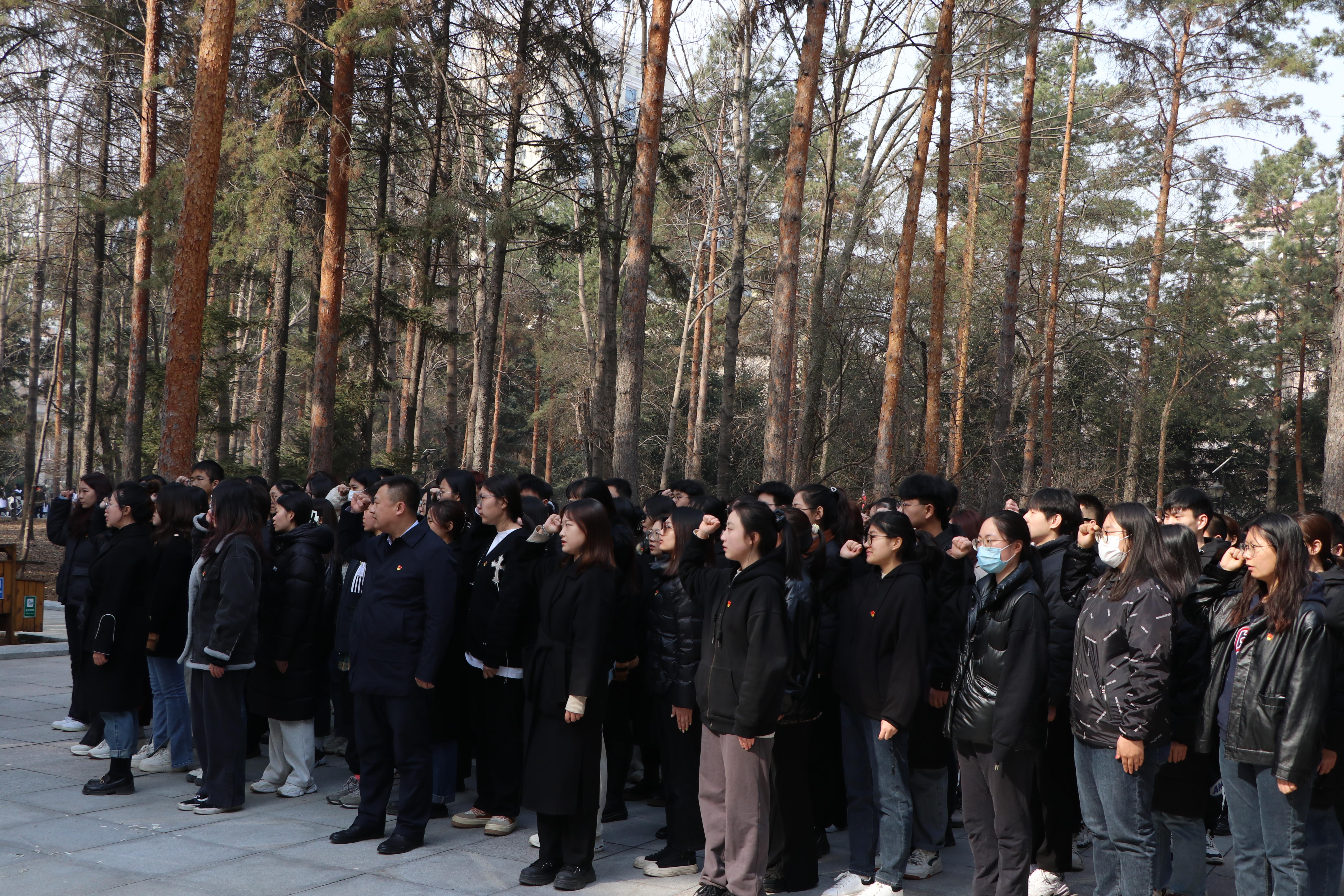 全体党员在庄严肃穆的烈士墓前肃立默哀,向革命烈士敬献鲜花,表达对烈士的崇高敬意和深切的悼念之情。默哀仪式完成后,重温入党誓词,通过庄严的仪式感,唤醒每个人的党员意识,继承和发扬革命先烈的爱国主义精神。重温入党誓词能够让师生们坚守初心、担当使命,进一步增强自身的敬畏意识和担当意识,努力践行对党的庄严承诺,争做有理想、敢担当、能吃苦、肯奋斗的新时代好青年。随后,同学们自发的在烈士陵园清理杂草和垃圾,用实际行动践行着自己的誓言。