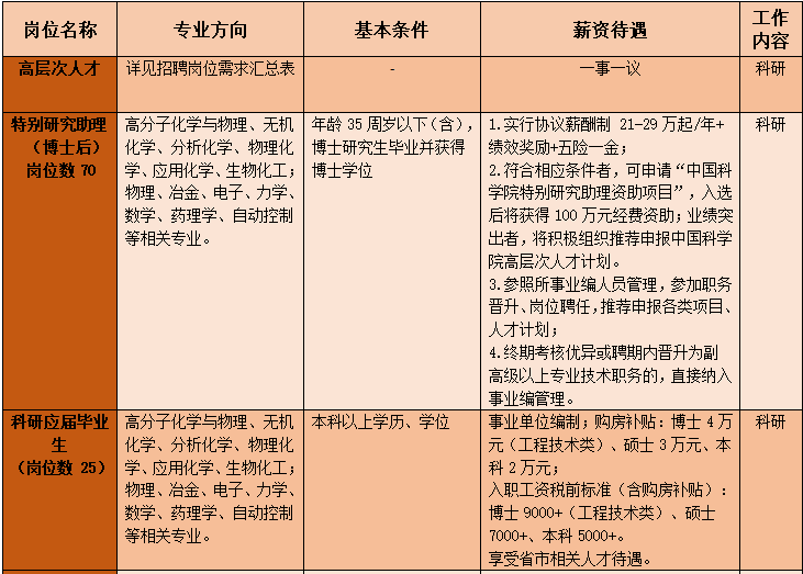 3.登记表和简历(纸质照片清晰版或pdf或word格式)电子版需以附件形式发至邮箱:yhszp@ciac.ac.cn,邮件主题需注明:“应聘岗位名称(特别研究助理/应届毕业生/管理/支撑)-公司-专业-学位;