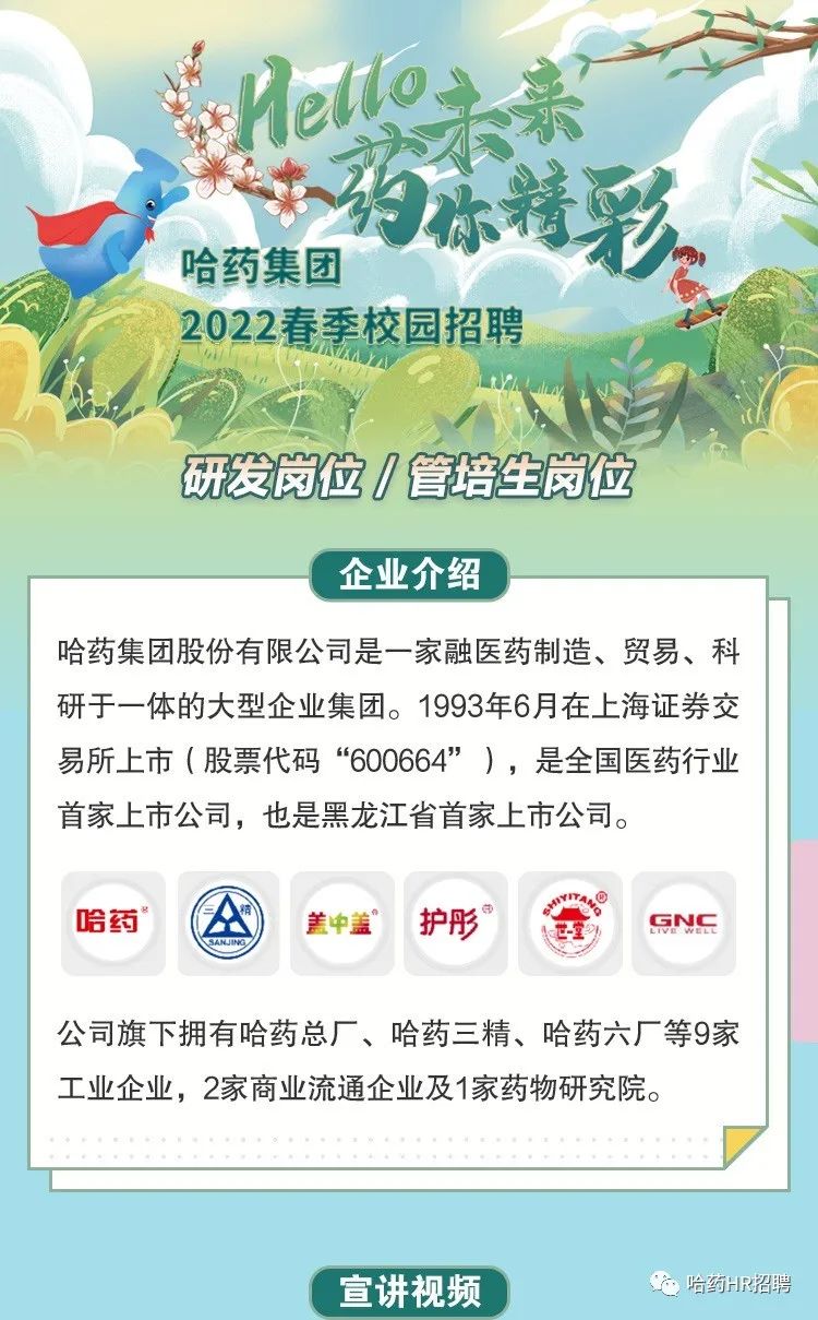 哈药集团2022春招—研发/管培生OFFER在等你!