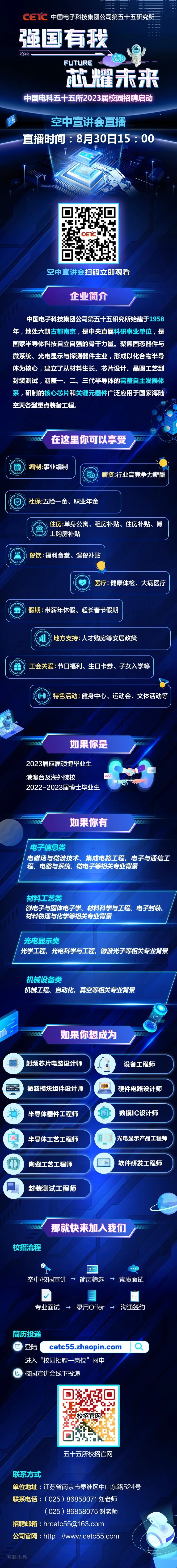 科研事业单位!中国电子科技集团公司第五十五研究所2023届校园招聘正式启动
