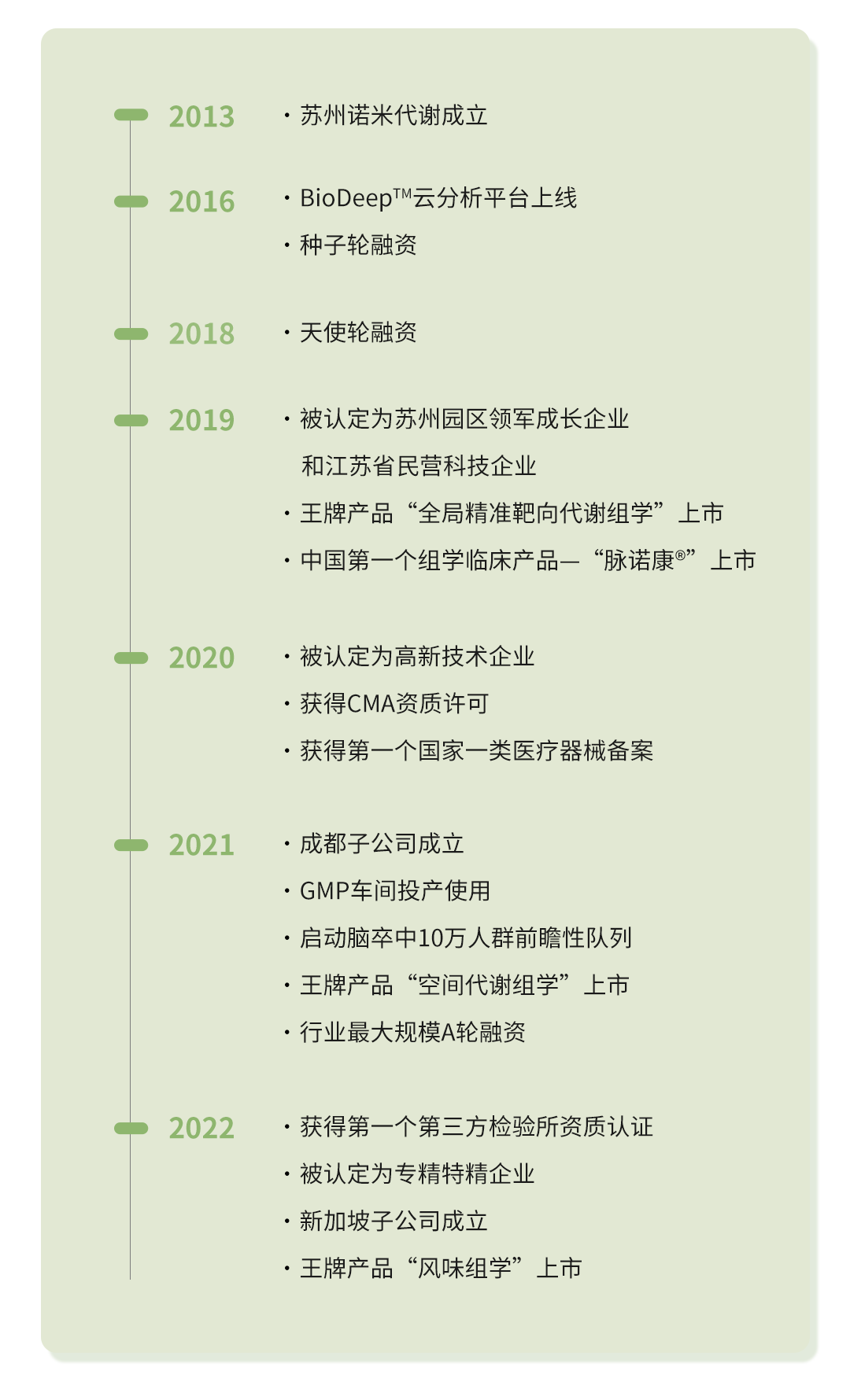 苏州帕诺米克生物医药科技有限公司(简称:诺米代谢)于 2013 年在苏州工业园区成立,公司拥有全球领先质谱设备80余台,可提供检测分析服务100余项,临床检测产品20余项。业务板块覆盖科研服务、工业服务、新药服务、临检服务、临床产品及健康管理,布局34个省市自治区的高校、科研所、医院及企业,服务客户超过1000家。诺米代谢专注于代谢组学前沿技术研究与临床应用开发,致力于打造代谢组学精准医学与精准营养的全方案提供商,成为每个人的代谢管家。