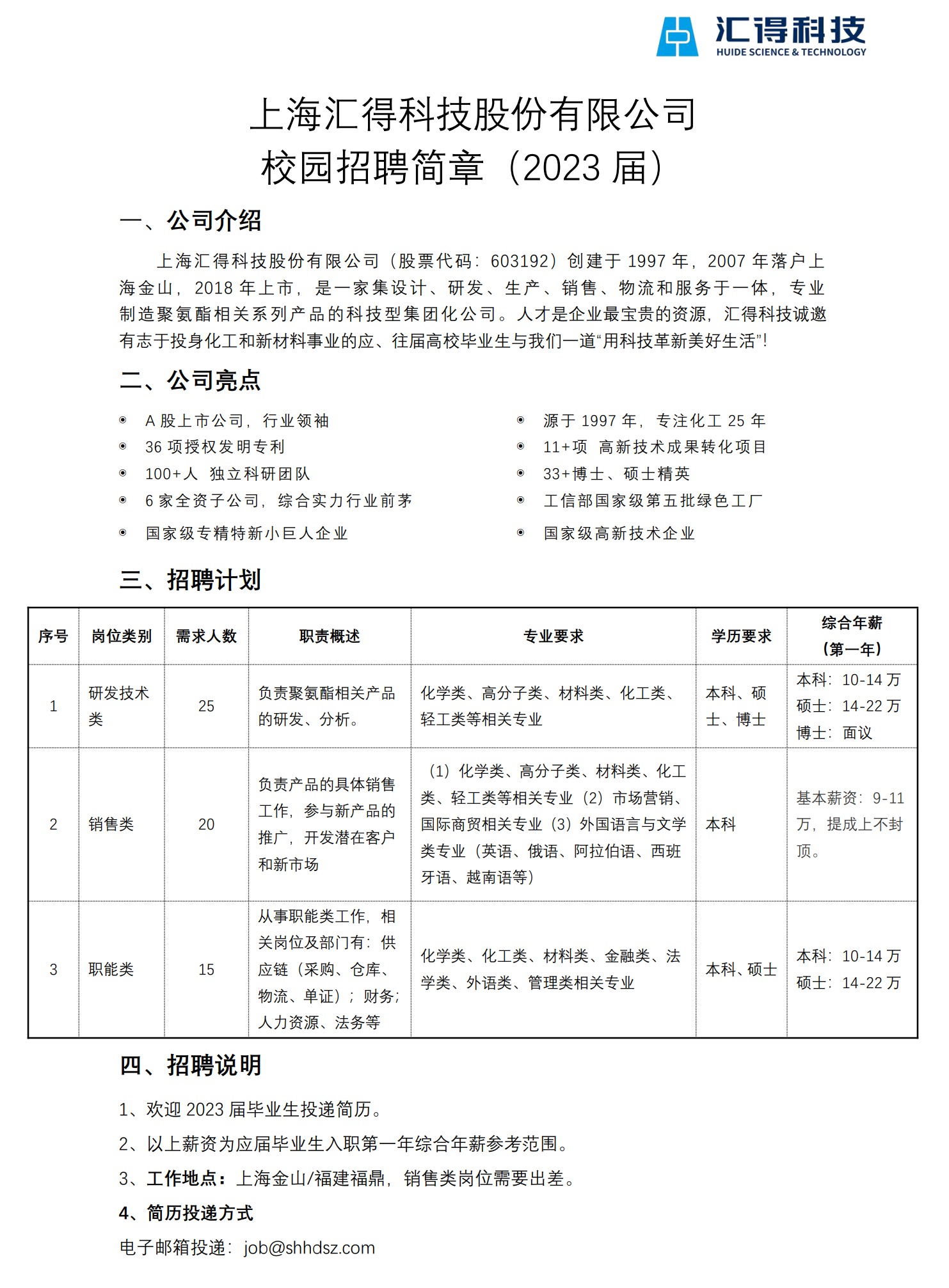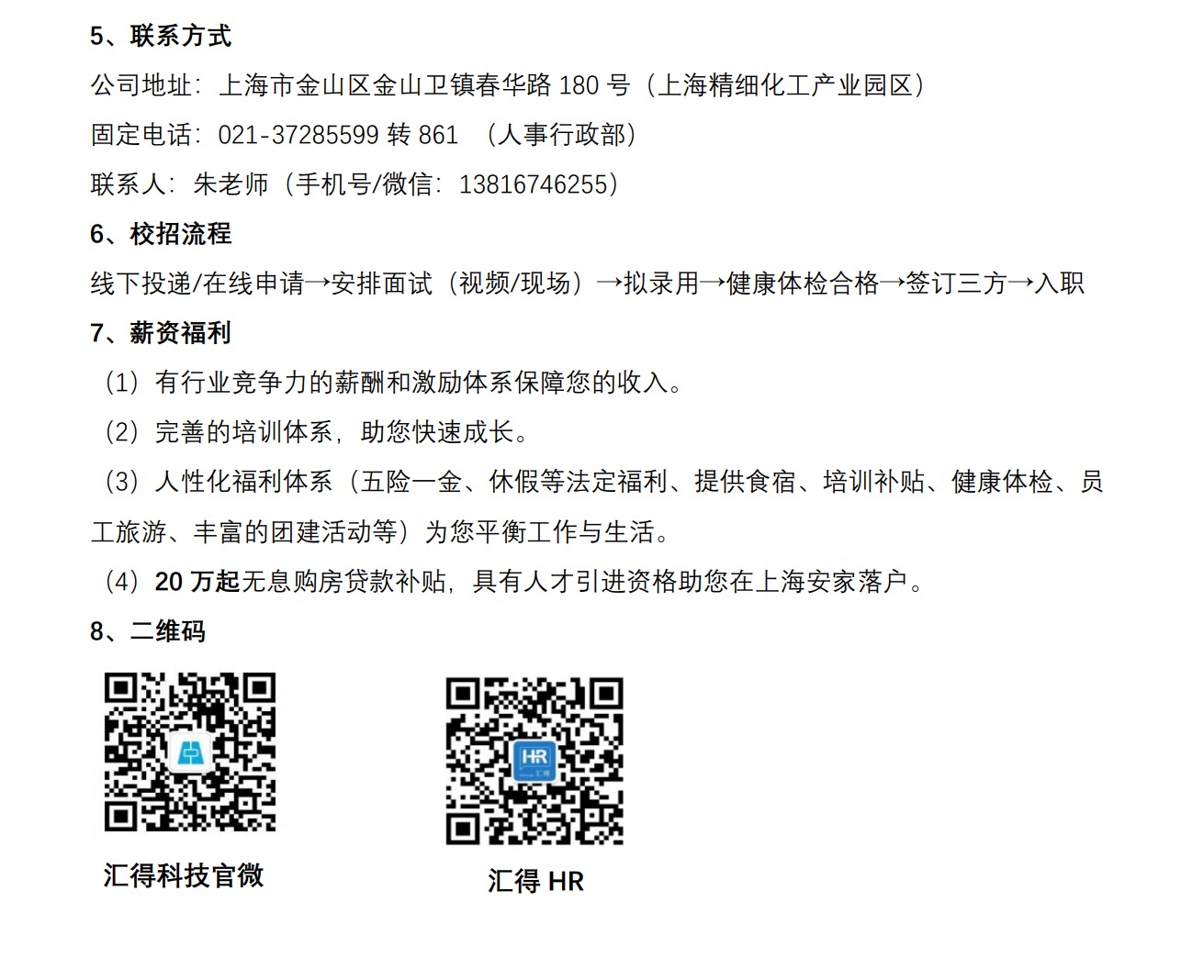 上海汇得科技股份有限公司校招!